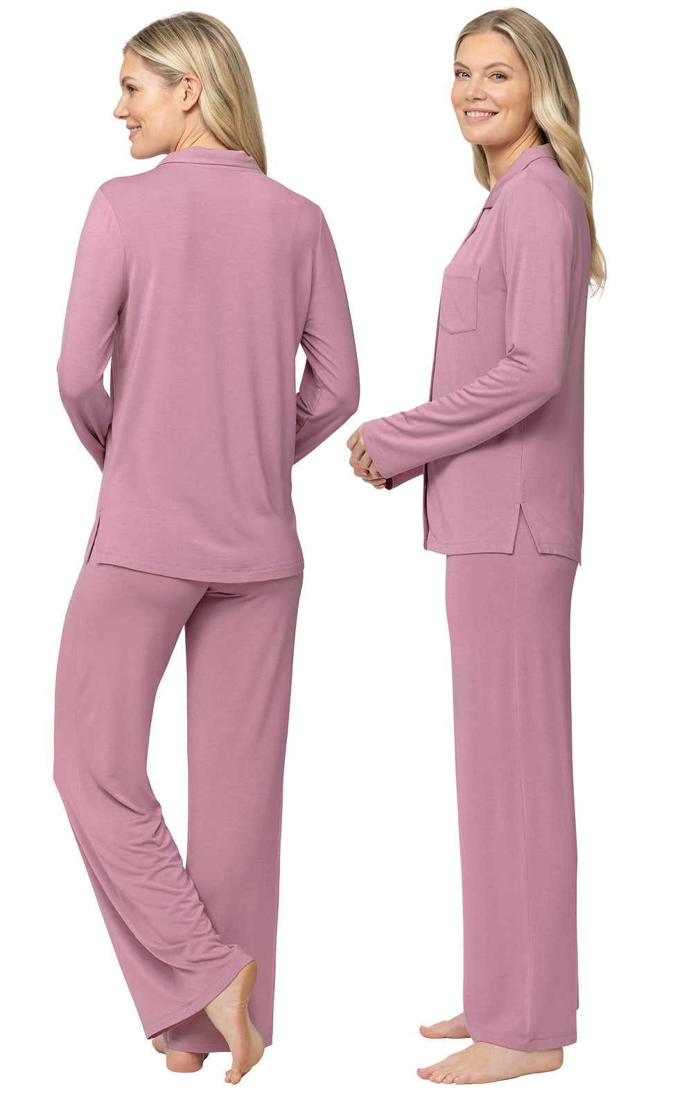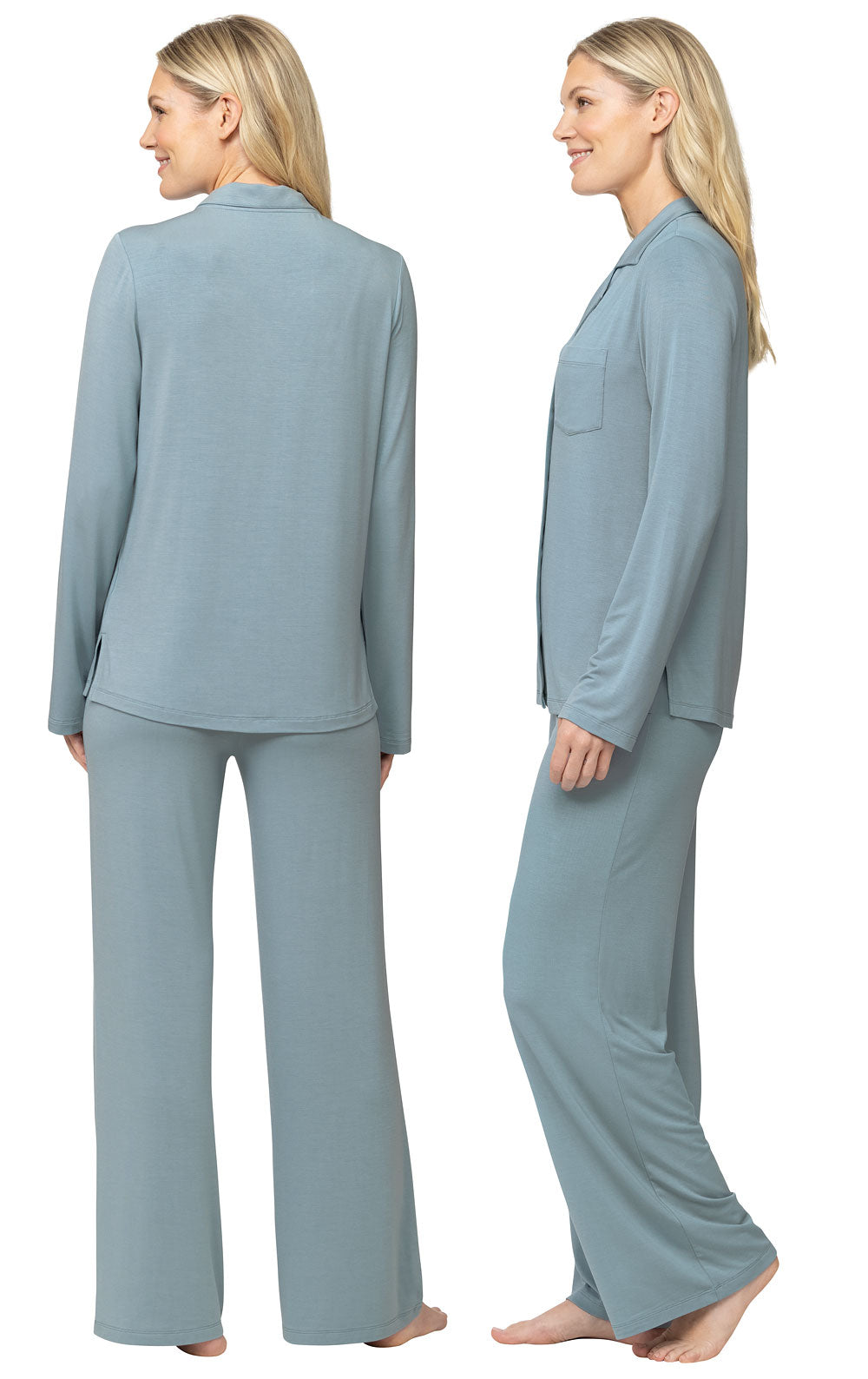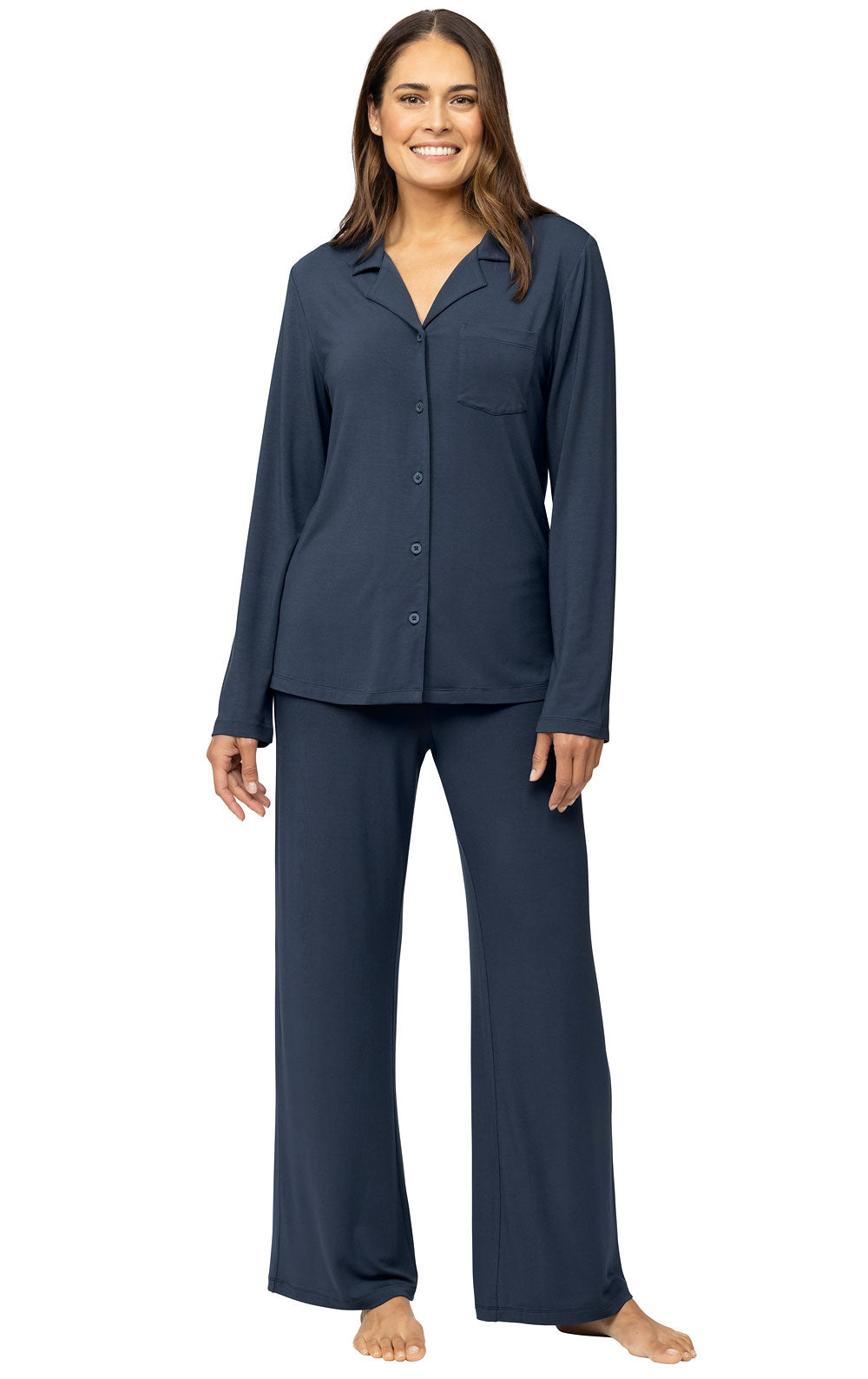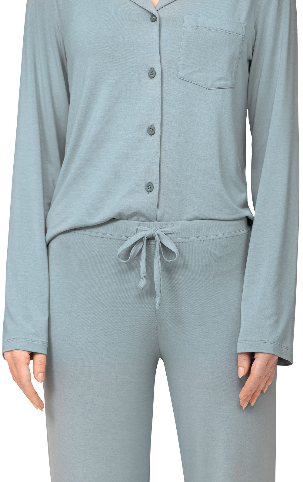 Made of a fabric that is manufactured using eco-responsible production practices for a cleaner. more sustainable environment as well as boasting fibers that are biodegradable. the Consciously Cozy Button-Front Pajamas are sleepwear to feel great about and in. A surprisingly super soft set. the Tencel material is also known for its excellent drape. breathability. and anti-wrinkle properties. Boasting just the right amount of stretch with a timeless yet modern design. these pajamas include a slightly fitted. long-sleeve. notched collar top with a breast pocket as well as relaxed fit pants with an elastic waist and drawstring. To wear these pajamas is to love these pajamas and that is it.