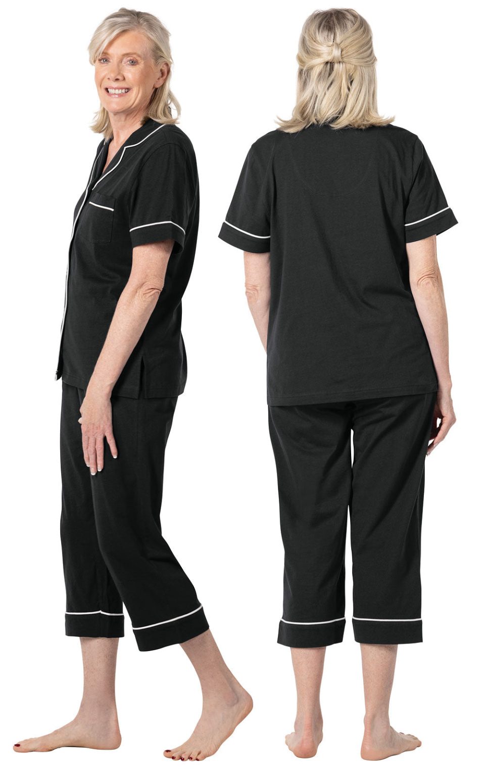 Solid Jersey Short-Sleeve Button-Front Capri Pajamas